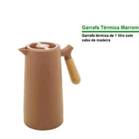 Garrafa Térmica 1L Cabo de Madeira Marrom Bering