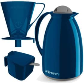 Kit Garrafa Térmica Café Prático Açucareiro Suporte Filtro Azul Bering