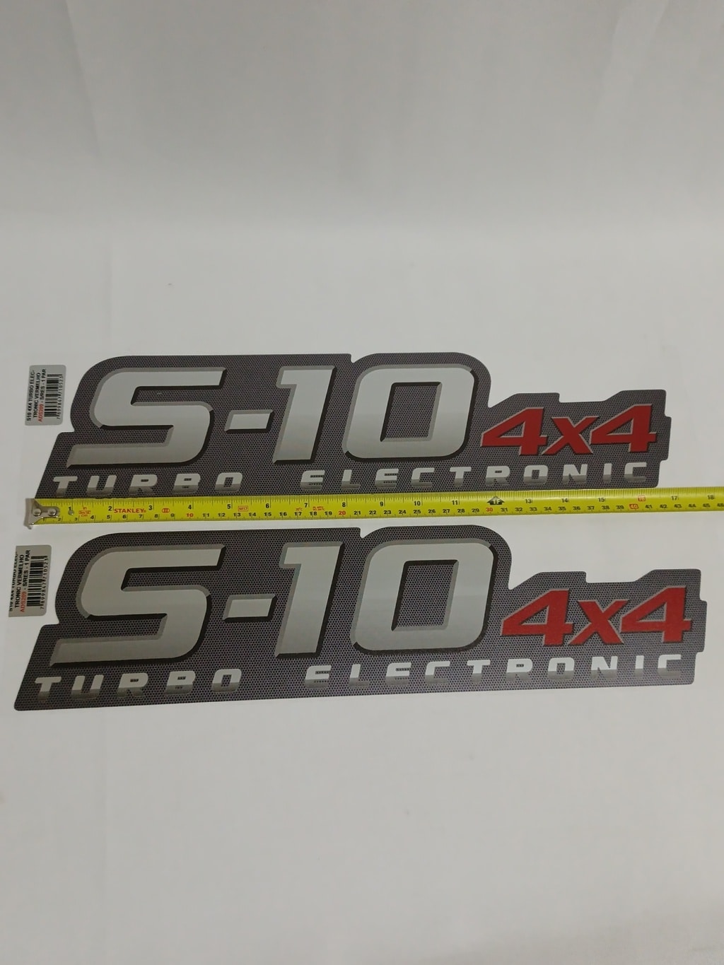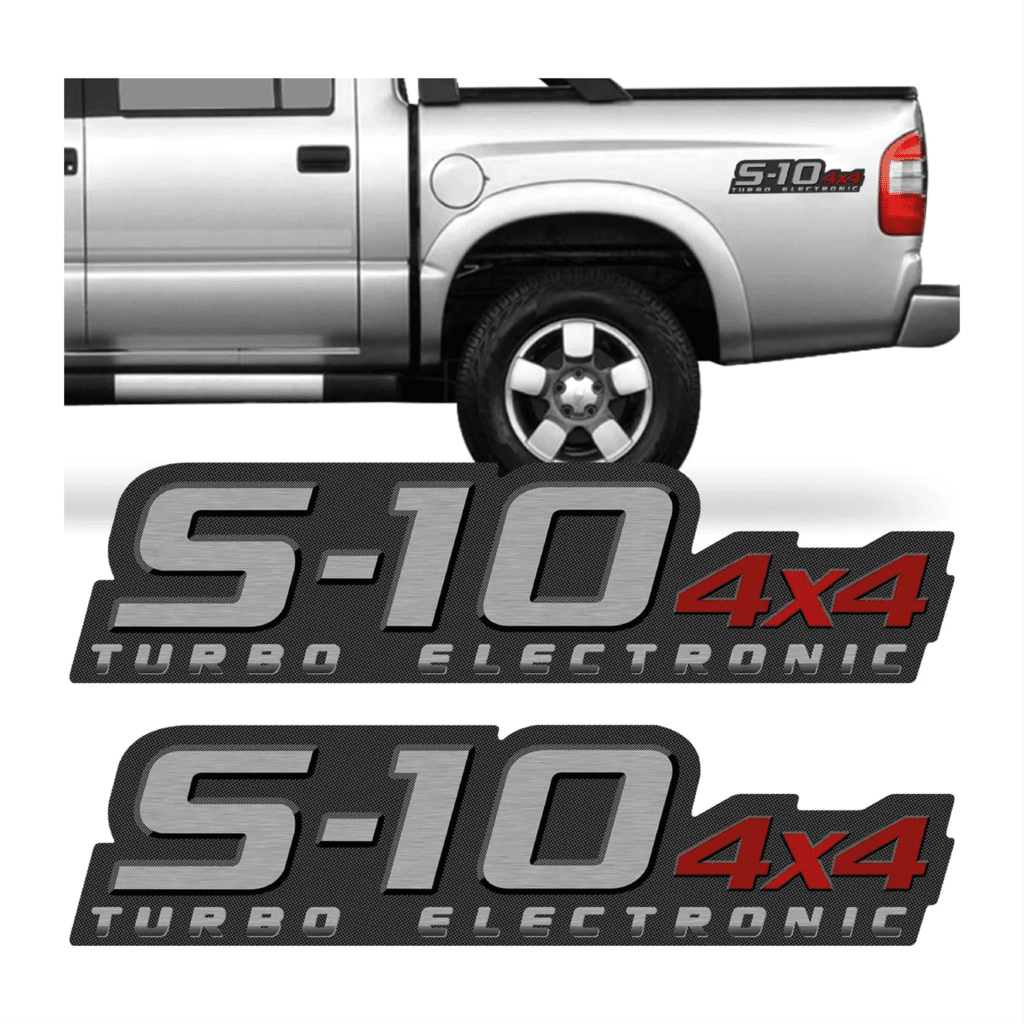 Emblema S10 4×4 Turbo Electronic Vermelho Grande (2009). Produto novo, alta qualidade. Envio até 11h (seg-sex).