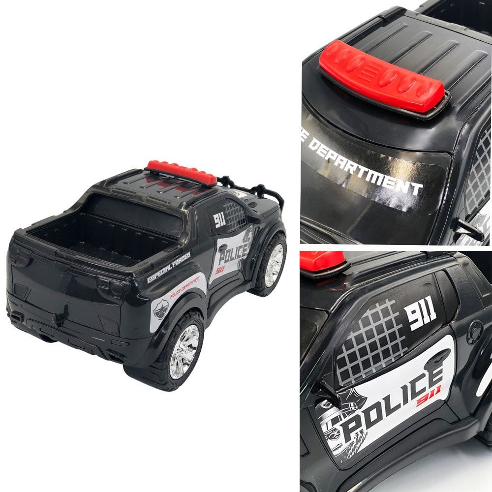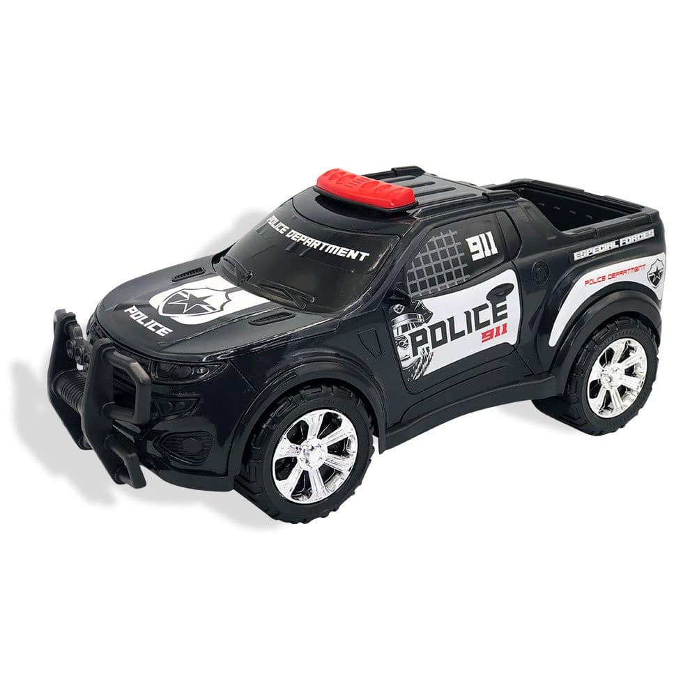 Com a caminhonete de polícia os pequenos se tornam verdadeiros heróis, eles podem patrulhar as ruas e salvar o dia, estimulando a imaginação e criatividade durante as brincadeiras. Contando com um design realista e cheio de detalhes, possui uma caçamba espaçosa para colocar outros brinquedos, rodas com detalhes cromados e para-choque robusto, proporcionando imersão, diversão e ajudando a desenvolver habilidades motoras da criança. Feito com materiais de alta qualidade, é durável e resistente, perfeita para aventuras cheias de ação, com rodas que se movimentam suavemente, permitindo que os pequenos brinquem com a caminhonete por diferentes terrenos, seja dentro de casa ou ao ar livre.