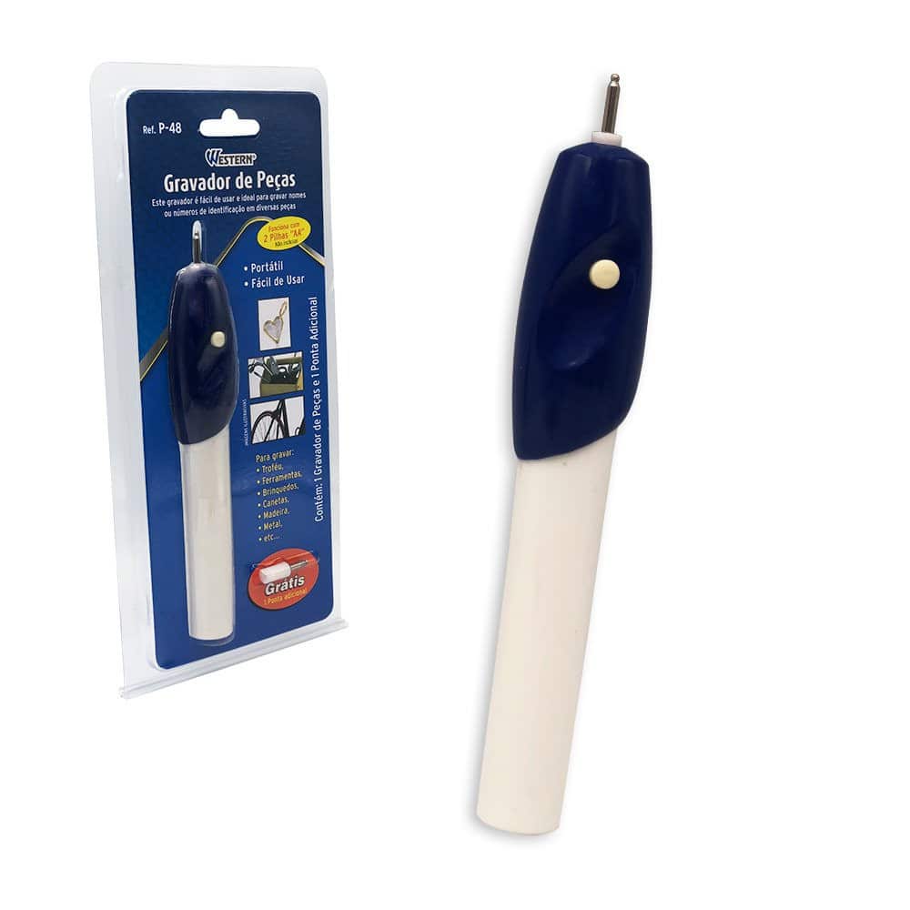 Caneta Gravadora Elétrica para Objetos. Este gravador movido a pilha é fácil de usar e ideal para gravar nomes ou números de identificações em diversas peças como por exemplo: peças de prata, joias, relógios, aparelho de som, computadores, tvs, troféu, brinquedos, ferramentas, etc. Este gravador pode ser utilizado em quase todos os tipos de metais, madeiras, vidros e materiais plásticos. Com um design simples e feita de materiais de qualidade, garante leveza e facilidade para usar. *Necessário o uso de Pilhas AA* *CUIDADOS*:-Não utilizar em atmosferas explosivas, como na presença de líquidos inflamáveis, gases ou altas temperaturas;-Ao utilizar, mantenha distância de crianças e animais;-Não exponha a ferramenta a condições úmidas ou chuva;-Limpe somente com pano limpo. Nunca utilize thinner;-Vista-se apropriadamente. Não use joias ou roupas largas. Mantenha a mão, partes do vestuário soltas e cabelos compridos afastados da extremidade em movimento.