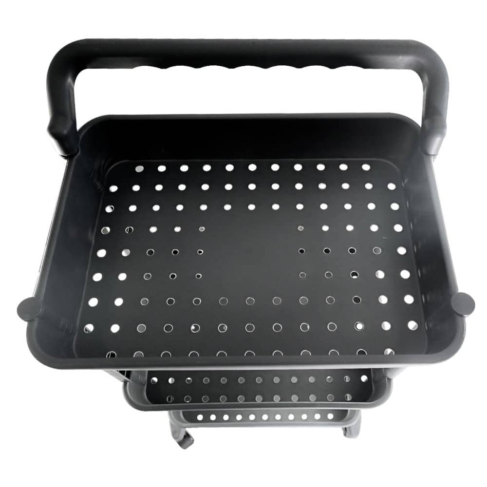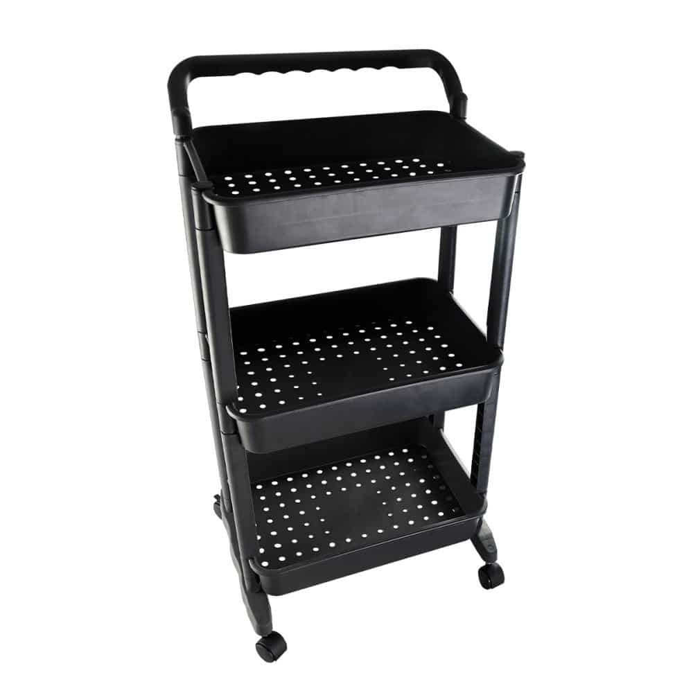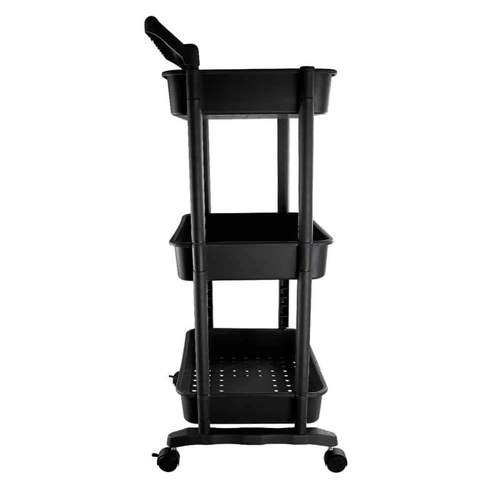 Para quem tem pouco espaço ou precisa de organização para seu estabelecimento, esse carrinho multiuso é essencial para atender suas necessidades. Possui três andares de prateleiras espaçosas, ideal para organizar cosméticos, acessórios de beleza, produtos de higiene, produtos de limpeza, toalhas ou também na cozinha para armazenar mantimentos e frutas. Além disso, vem com rodinhas e uma alça para carregar para onde quiser. ESPECIFICAÇÕES:Material: PlásticoDimensões: 85cm altura x 30cm profundidade x 42cm largura Altura de uma prateleira para outra é de 23cm (São 3 prateleiras)Cor: Cinza CONTÉM:01 Carrinho Organizador Multifuncional com rodinhas 3 Prateleiras Cinza