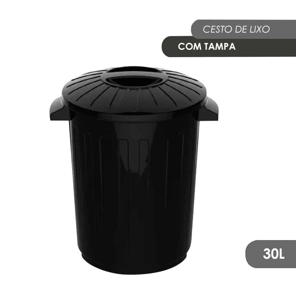 Cesto de Lixo com Tampa 30 Litros Uninjet Feito para manter o ambiente limpo, esse cesto será um ótima aquisição!Com sua ótima capacidade de armazenamento, o cesto é perfeito para o uso doméstico, escritórios, comércios, entre outros.O cesto possui uma tampa removível que ajuda a manter os odores desagradáveis e os insetos indesejados longe do seu espaço, além disso, sua abertura ampla facilita o descarte dos resíduos, tornando a tarefa rápida e higiênica.Seu design elegante e discreto faz com que ele se adapte perfeitamente a qualquer ambiente, seja na cozinha, banheiro, escritório ou sala, combinando funcionalidade e estilo, completando a decoração.Sua capacidade de 30 litros oferece amplo espaço para descartar uma grande quantidade de lixo, reduzindo a necessidade de esvaziá-lo com frequência, sendo ótimo para ambiente movimentados, onde a produção de lixo é maior.Feito com materiais de alta qualidade, garante resistência e durabilidade ao lidar com o descarte diário, proporcionando um ambiente mais higiênico.  ESPECIFICAÇÕES:Material: PolipropilenoDimensões: Alt.: 48cm x Diâmetro: 52,5cm x Larg.: 43cmCapacidade: 30 Litros Peso: Aprox. 865gCor: Preto  CONTÉM:01 CESTO DE LIXO COM TAMPA 30 LITROS UNINJET