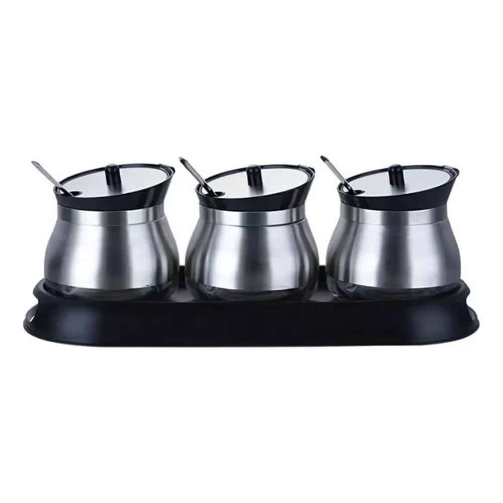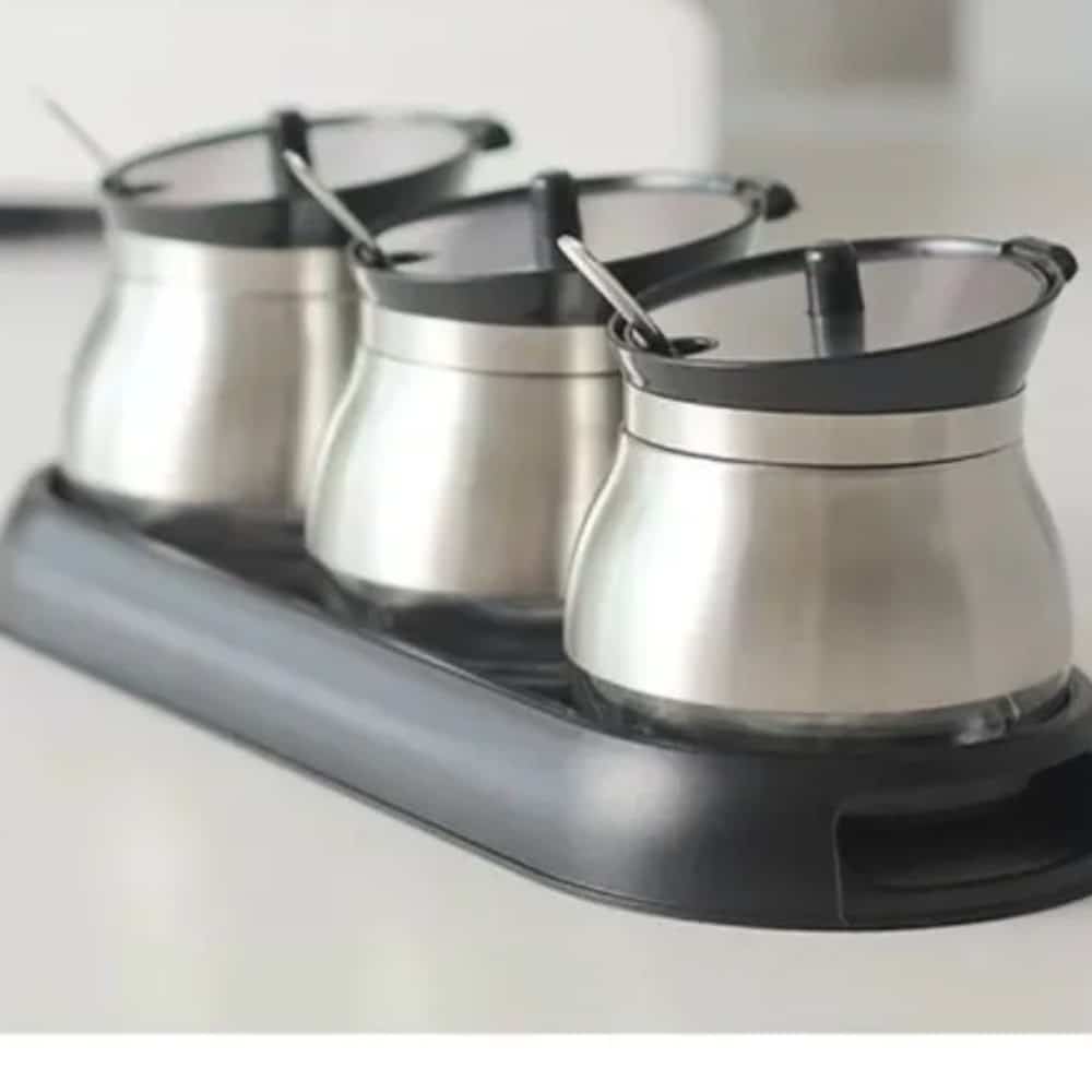 Conjunto 3 Unidades Porta Condimentos de Vidro 250ml – Inox