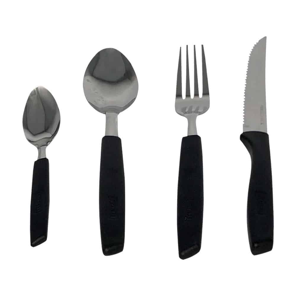Conjunto de Talheres Capri 25 Peças – Preto Composto por talheres duráveis e de alta qualidade, esse conjunto irá adicionar um toque de elegância a qualquer ocasião. Seu acabamento preto fosco proporciona um visual moderno e sofisticado. Contando com 25 peças, sendo elas: 6 facas, 6 colheres, 6 garfos, 6 colheres de chá e 1 suporte, o conjunto é completo e versátil, você terá à disposição colheres, colheres de sobremesa, garfos e facas para atender a todas suas necessidades, desde almoços casuais até jantares formais.Além do seu design impecável, os talheres são ergonomicamente projetados para um manuseio confortável, com seu peso equilibrado e suas bordas suavemente arredondadas proporcionam uma experiência de uso agradável, garantindo que cada garfada ou corte sejam perfeitos. Fabricados com materiais de alta qualidade, os talheres são resistente e duráveis, o aço inox não enferruja, são projetados para o uso diário e manter o brilho por muito tempo, além do seu acabamento torna-los fáceis de limpar, permitindo que você desfrute de sua refeição sem se preocupar com a limpeza.
