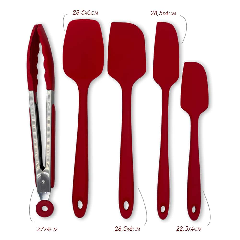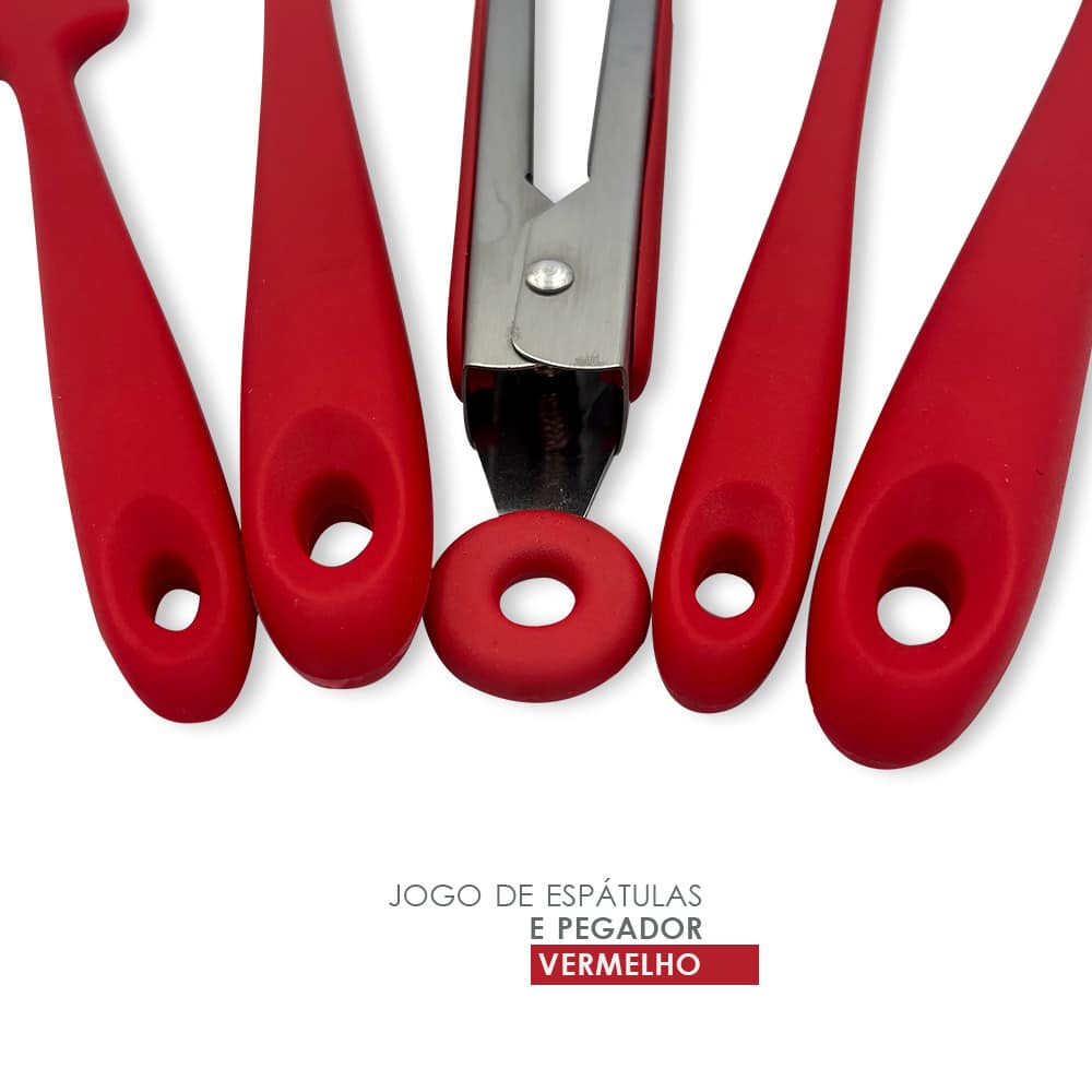 01 KIT 05 UTENSÍLIOS DE SILICONE ESPÁTULAS E PEGADOR – VERMELHO