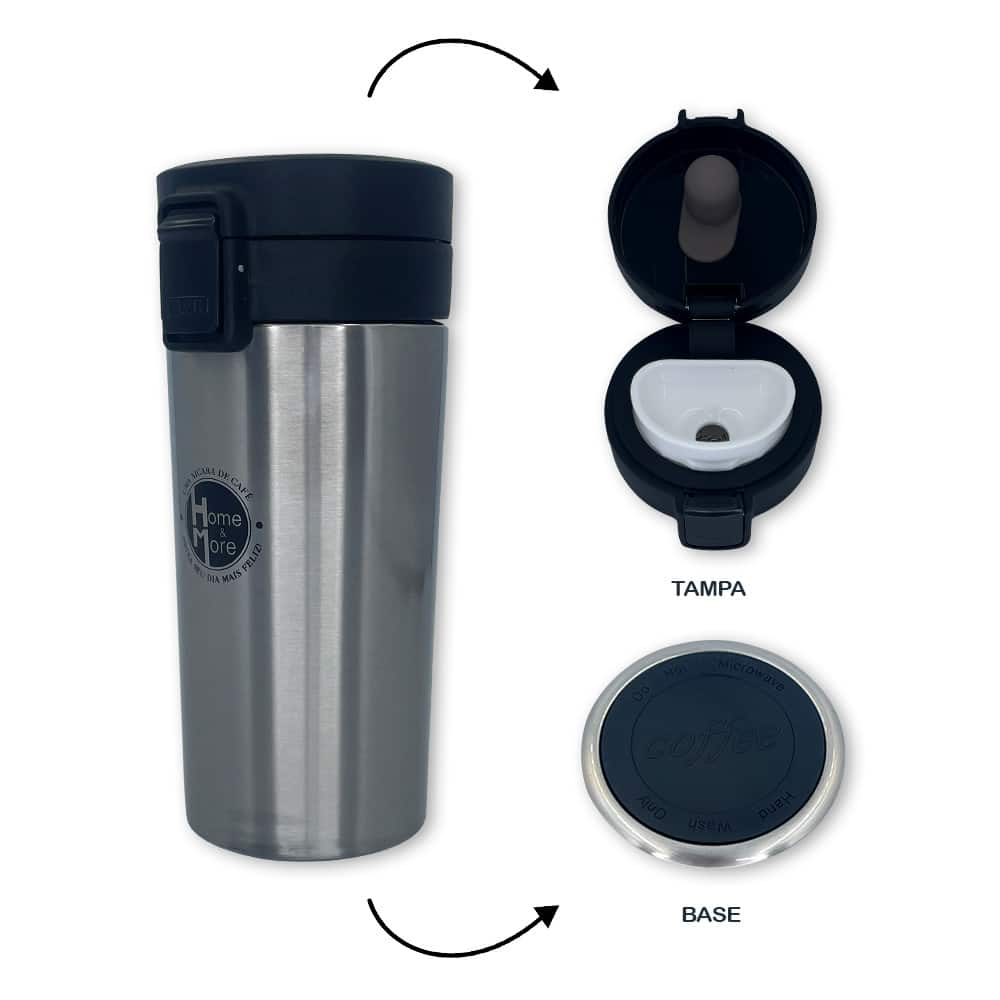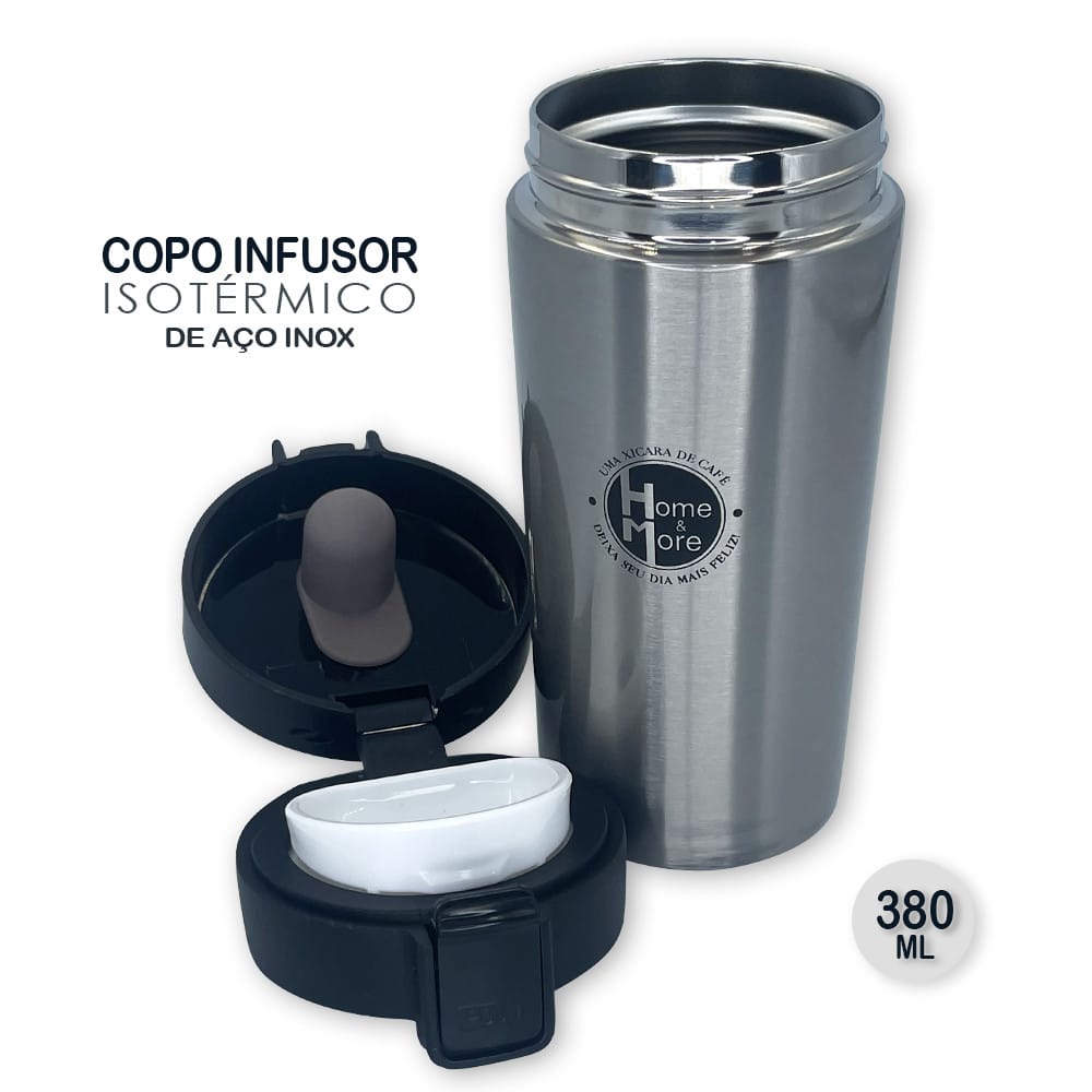 Copo Térmico Infusor 380ml Aço Inox Garrafa a Vácuo Cinza