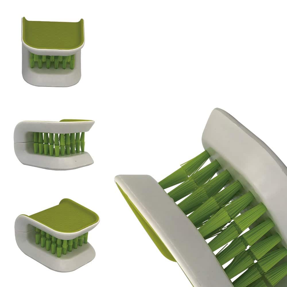 Nossa escova de talher é projetada com cerdas firmes e duráveis, especialmente desenvolvidas para remover facilmente resíduos de alimentos e sujeiras incrustadas dos seus talheres favoritos. A escova se encaixa perfeitamente em sua mão, proporcionando uma experiência de limpeza confortável e eficiente. Adeus, horas de esfrega e esfrega! Além de ser altamente funcional, a escova de talher é compacta e fácil de armazenar. Você pode mantê-la na gaveta da cozinha ou pendurá-la próximo à pia, sempre à mão quando precisar.
