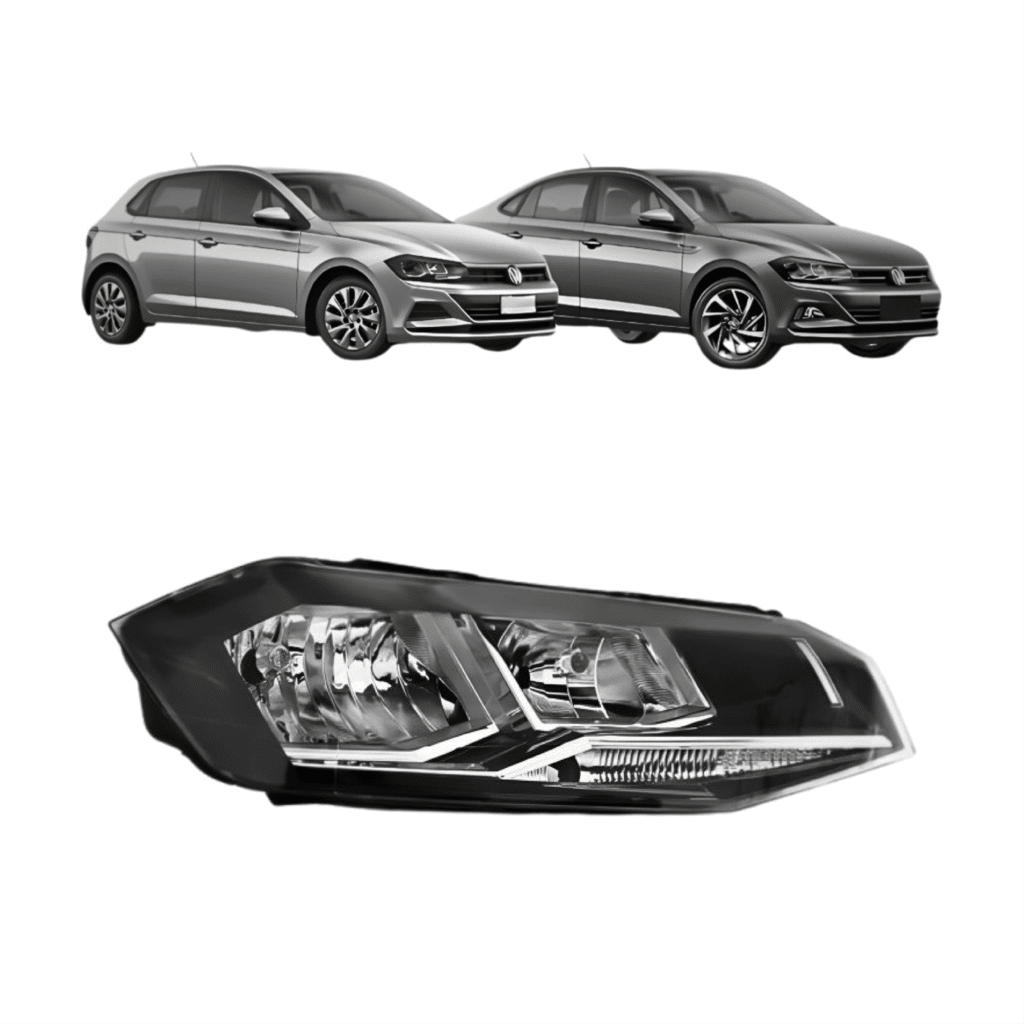 Farol Polo Mascara Negra Friso Cinza Lado Direito (2020). Produto novo, alta qualidade. Envio até 11h (seg-sex).