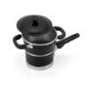 O revestimento interno antiaderente não deixa que o alimento grude na panela, mesmo com uso reduzido de óleo no preparo, o material também facilita a limpeza. Para mexer ou tirar o alimento, use somente utensílios de madeira, silicone ou nylon no revestimento antiaderente, isso irá garantir a qualidade a longo prazo.