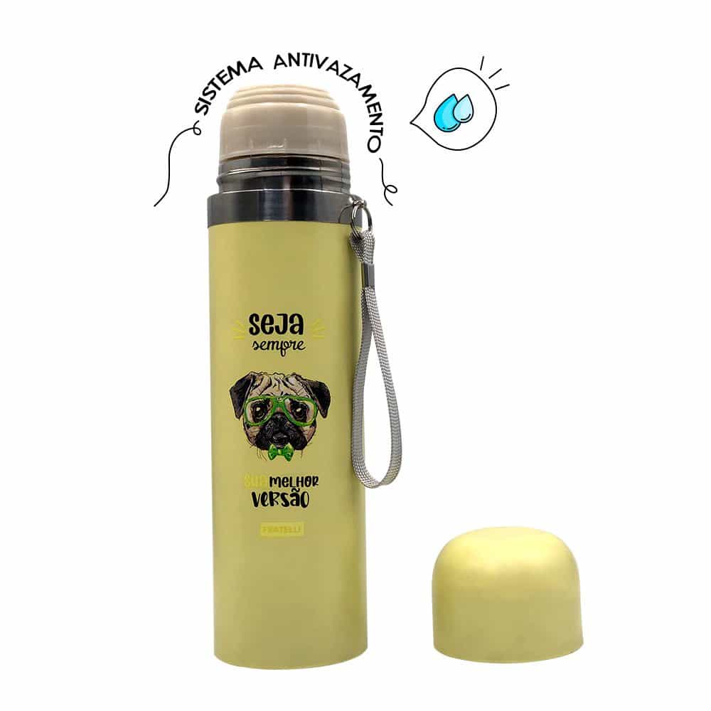 Garrafa Inox Color 480ml – Amarelo Com um design moderno e com diversas cores vibrantes, essa garrafa será uma ótima escolha para você! Feita com materiais de qualidade, garantirá uma ótima durabilidade, além de contar com um excelente sistema antivazamentos, com uma tampa hermética segura, bastando apenas pressionar o botão para que a água pare de sair. você poderá transportar a garrafa para onde quiser, seja na bolsa ou mochila, sem se preocupar com vazamentos indesejado. Feita com um design moderno e divertido, a garrafa é compacta, podendo ser guardada em vários lugares, tanto em sua mesa de trabalho ou escola, como em seu armário. Conta com variadas imagens de cachorros e gatos estampadas com diversas frases para alegrar o seu dia a dia, além de uma variedade de cores para combinar com qualquer ambiente em que esteja, conta com um suporte que da a possibilidade de pendura-lá, economizando mais espaço ainda.