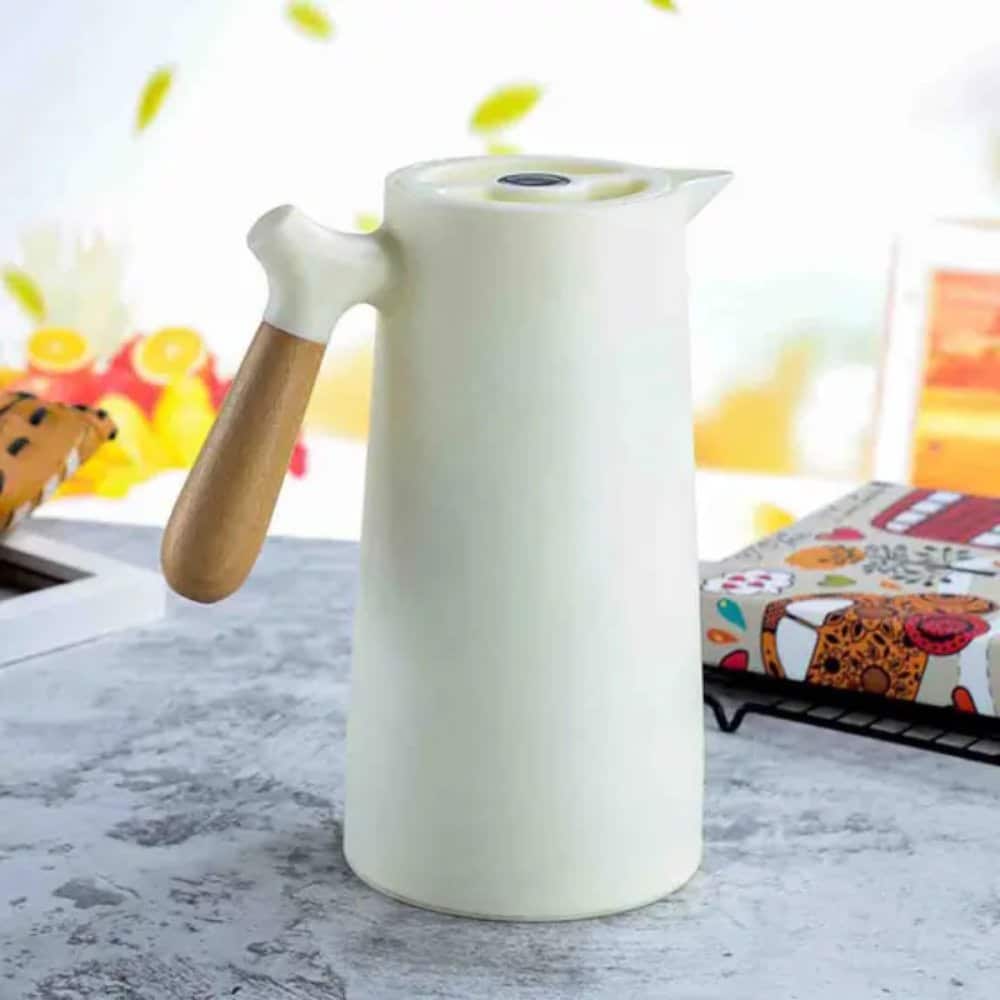 Garrafa Térmica 1L Cabo de Madeira Branco Bering