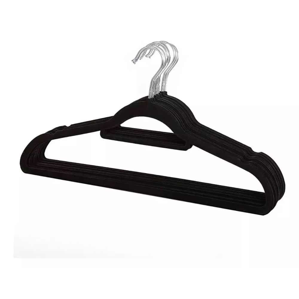 Kit 10 Unidades Cabides Slim Veludo Preto