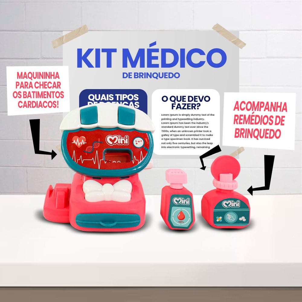 Divirta-se brincando de médico! Com essa Bancadinha incrível brinquedo você poderá examinar, medir a temperatura, ouvir batimentos cardíacos e tudo mais que um médico pode fazer. Além disso o kit conta com 25 peças para estimula a criatividade e imaginação das crianças elas vão se sentir médico de verdade, fazendo com que elas comecem a tomar gosto pela profissão e também as incentiva a terem o zelo em cuidar de outras pessoas. -Não Recomendável para menores de 03 anos por conter partes pequenas que podem ser engolidas.