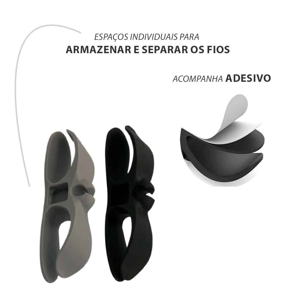 Kit com 4 Organizadores de Cabos e Fios Feito com design elegante e funcional, o organizador de fios possui espaços individuais para armazenar e separar os fios, permitindo que você os mantenha organizados de forma sistemática. Não importa se são fios de carregadores, cabos de computador, fones de ouvido ou outros dispositivos eletrônicos, esse organizador será a solução para evitar nós e confusões. O organizador fácil de usar e instalar, basta colocar o adesivo colante e pressionar em uma superfície plana instalando o organizador, enrole os cabos em torno do suporte designado, ajustando conforme necessário. ESPECIFICAÇÕES:Material: PlásticoDimensões:Comprimento 10cm x Largura 03cmPeso: Aproximadamente 20gCores: Preto e Cinza CONTÉM:01 KIT COM 4 ORGANIZADORES DE CABOS E FIOS