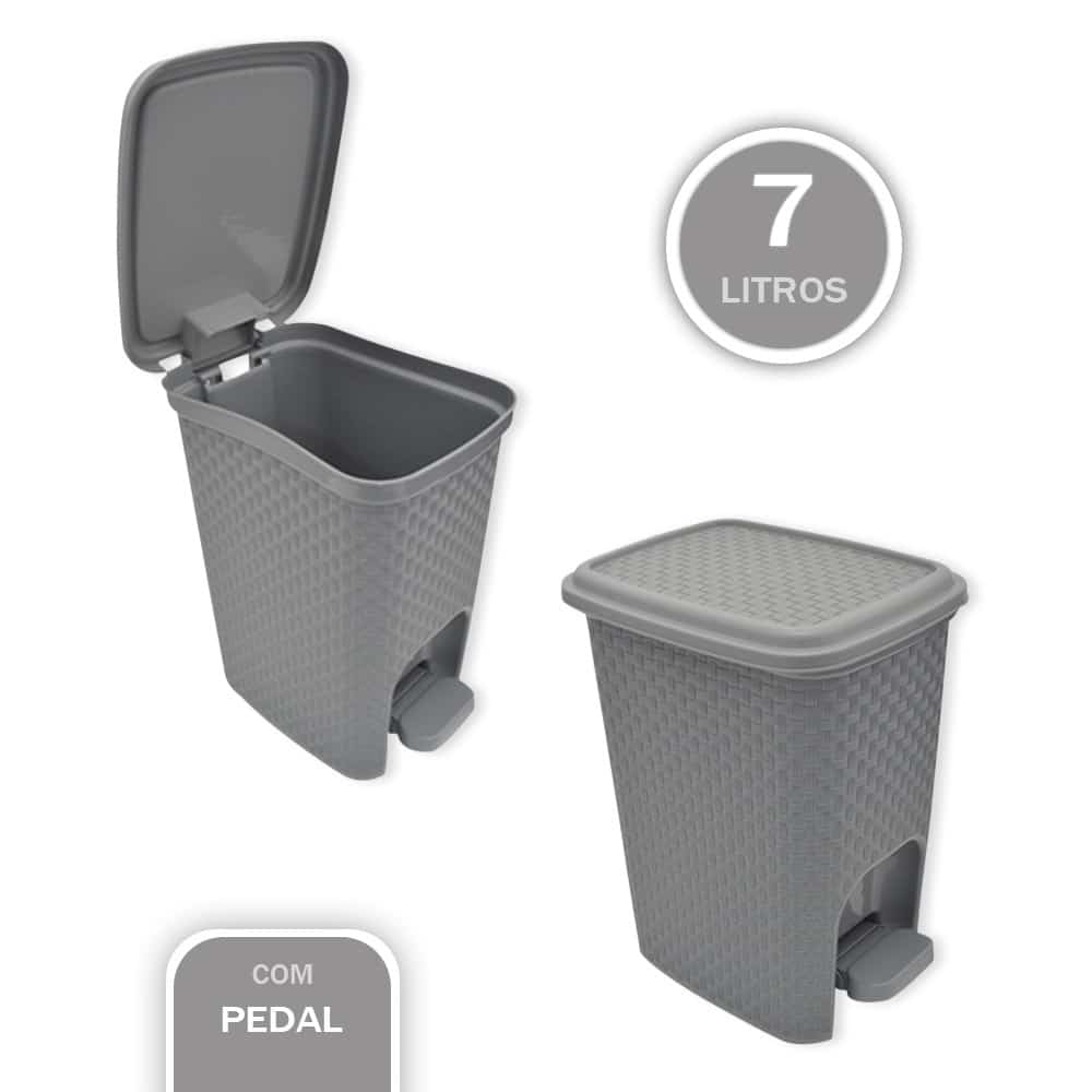 01 LIXEIRA 07 LITROS COM TRAMAS NA COR CINZA