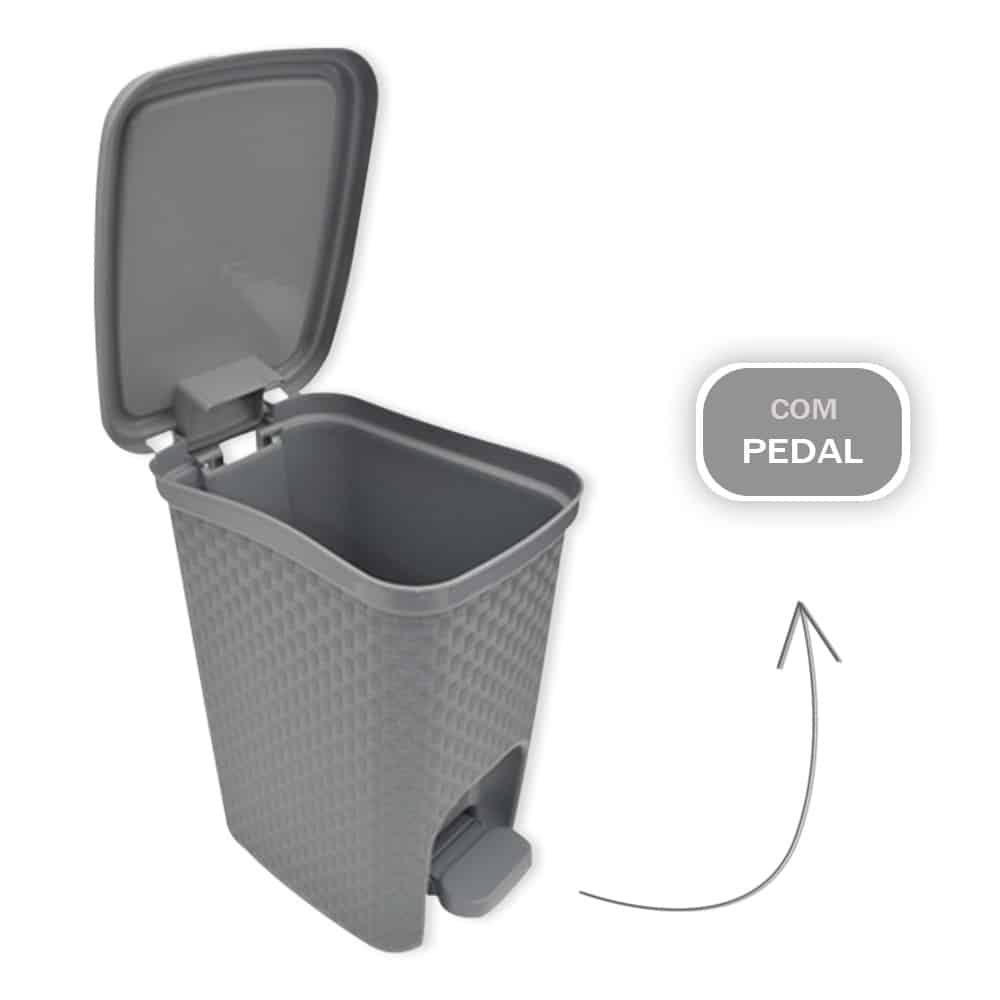 Lixeira com Pedal Trama Rattan 7 Litros Cinza Bering
