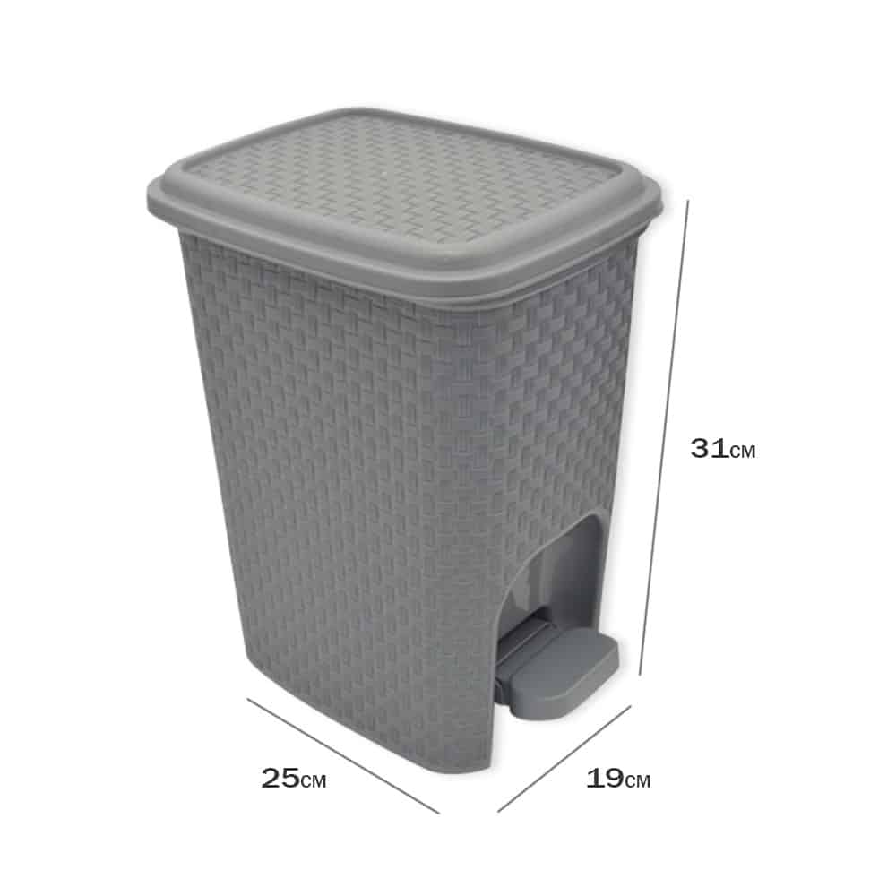 A lixeira de 07 litros pode ser utilizada em qualquer ambiente, seja em casa ou no trabalho. Produto em plástico resistente, texturizado com efeito de tramas. Fácil de limpar, pode ser molhada e usar seus produtos de limpeza sem medo, pois não perde a cor. A tampa é acionada através do pedal, basta pisar no pedal para acionar o levantamento da tampa.