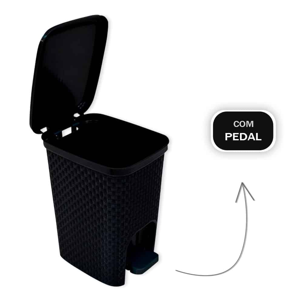 Lixeira com Pedal Trama Rattan 7 Litros Preta Bering