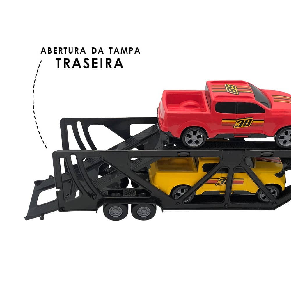 Mini Cegonheiro de Brinquedo com 2 Carrinhos – Azul Para aqueles que gostam de veículos de transporte, essa cegonheiro será a escolha perfeita!Com essa cegonheiro você poderá levar seus carros favoritos para onde quiser, seja para uma corrida imaginária ou para exibir sua coleção. Possui espaço para até 4 carrinhos de brinquedo, sendo cada um deles de uma cor diferente.Seu design conta com um jeito fácil de carregar e descarregar os carros, bastando apenas abrir a rampa traseira e carregar os carros para sua próxima aventura.Além de um design vibrante e cheio de detalhes, o brinquedo é produzido com materiais de ótima qualidade, garantindo resistência e durabilidade para que a criança possa brincar sem se preocupar, trazendo mais segurança aos pais. ESPECIFICAÇÕES:Material: Polipropileno e AdesivoDimensões: -Cegonheiro: Comprimento: 35cm x Alt.: 7,5cm x Larg.: 6,7cm -Carrinho: Comprimento: 12,5cm x Larg.: 5cm x Alt.: 5cm Peso: Aprox.:145gCor: Azul CONTÉM:01 MINI CEGONHEIRO DE BRINQUEDO COM 2 CARRINHOS – AZUL Registro Inmetro: 000362/2018