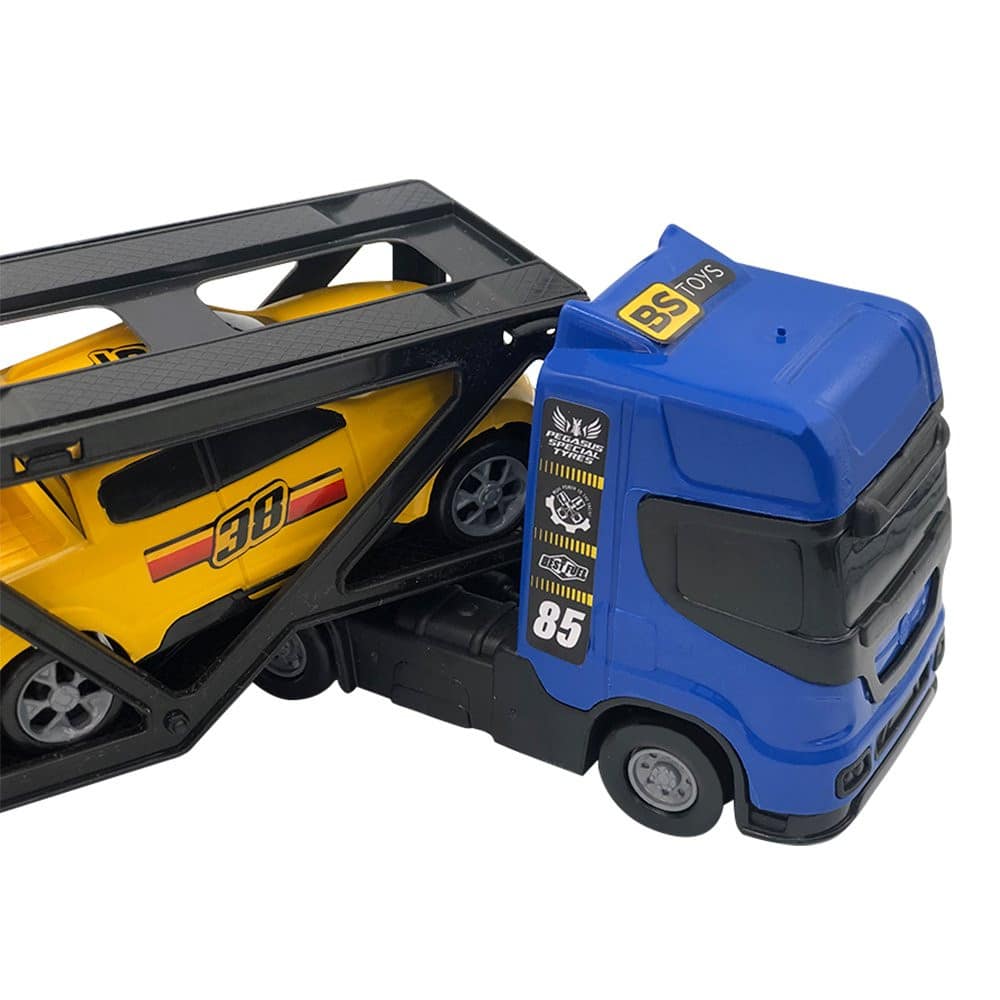 Mini Cegonheiro de Brinquedo com 2 Carrinhos Azul Bering