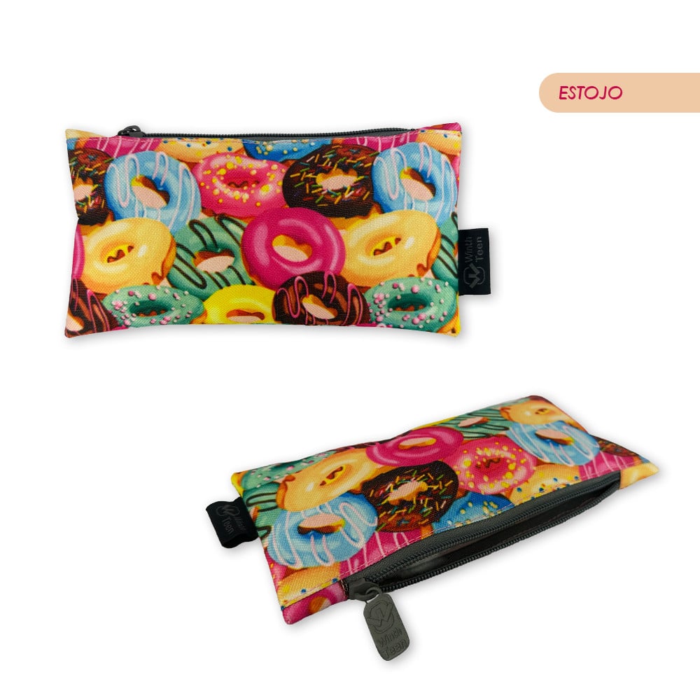 Estojo – 22cm largura x 12cm altura Capacidade: 16 Estampa: Donuts