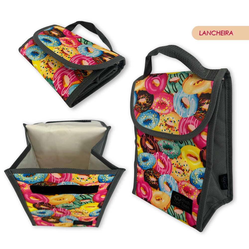 Mochila Escolar Donuts Estojo Lancheira 3 Peças Bering