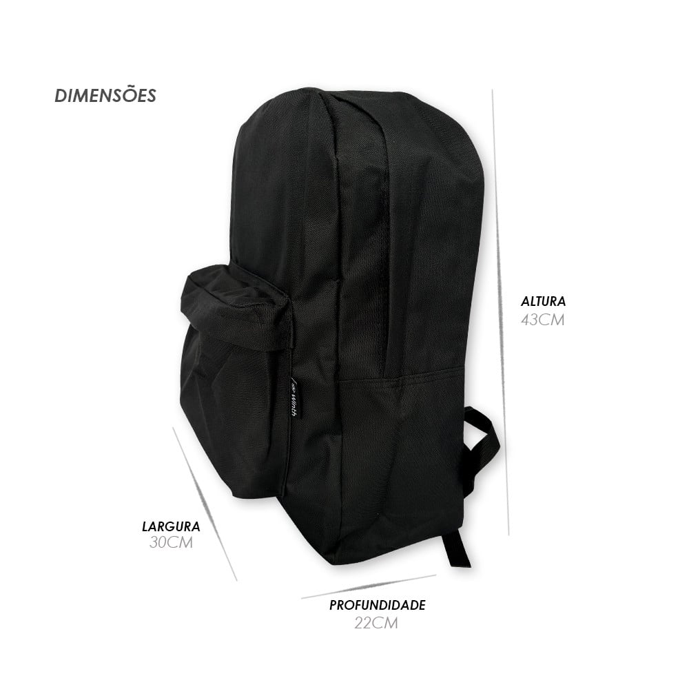 Mochila Escola All Black Mochila ideal para o dia a dia escolar, cabe todos os materiais e acessórios. Básica sem muitos detalhes, tem um bolso amplo frontal, unissex, espaçosa e prática. ESPECIFICAÇÕES:Material: PoliésterDimensões: 43cm altura x 30cm largura x 22cm profundidadeCor: PretaCapacidade: 28 litros CONTÉM:- 01 Mochila Escolar Preta