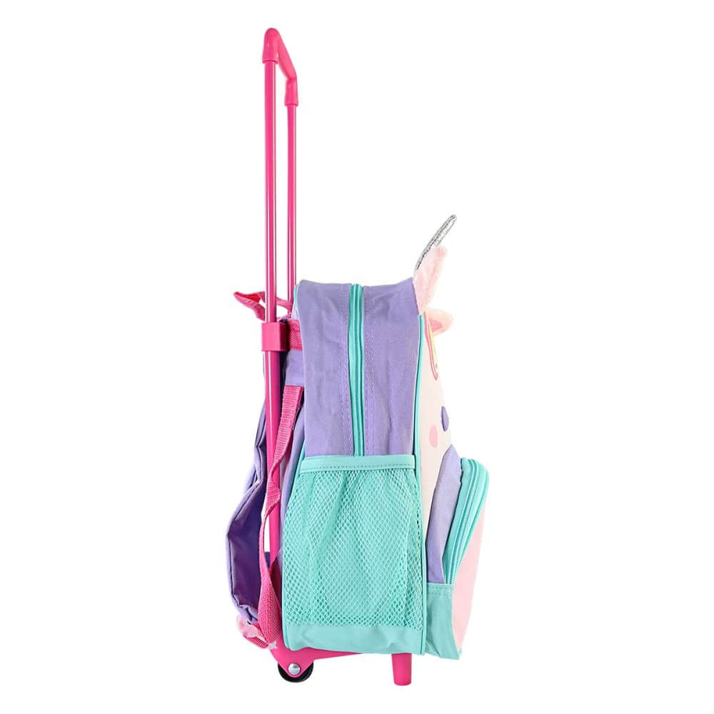 Mochila Infantil com Rodinhas Unicórnio Roxo Torne a ida para a escola ainda mais divertida com essa mochila de rodinhas! Confeccionada em um design super fofo, usando cores vivas e trazendo um universo lúdico com o desenho de arco-íris e até um unicórnio em 3D. A mochila conta com alças nas costas, alça de mão, rodinhas e um puxador, totalmente desenvolvida em um material leve que garante não machucar. Além do bolso frontal e mais dois bolsos laterais com proteção de tela. Por ser bem espaçosa também é uma ótima opção para passeios, assim você pode guardar todos os pertences da sua filha com total segurança e praticidade, garantindo ainda mais organização. – Rodinhas duráveis. – Material resistente. CUIDADOS:- Guarde-a em um local arejado. – Para a limpeza utilize apenas pano úmido e sabão neutro. – Não imergir água.- Não utilizar componentes químicos.- Evite colocar excesso de peso.- Evite dobrar para que a estampa permaneça nova. SIGA AS INSTRUÇÕES DE CUIDADO E GARANTA MAIS DURABILIDADE E MELHOR EXPERIÊNCIA. *** ESPECIFICAÇÕES:Material: Poliéster, Plástico, Metal. Dimensões: Alt: 33cm X Larg: 26cm x Profundidade: 17Capacidade: 14 Litros Peso: 0,300g aprox.Cor: Roxo CONTÉM:01 Mochila Infantil com Rodinhas Unicórnio Roxo