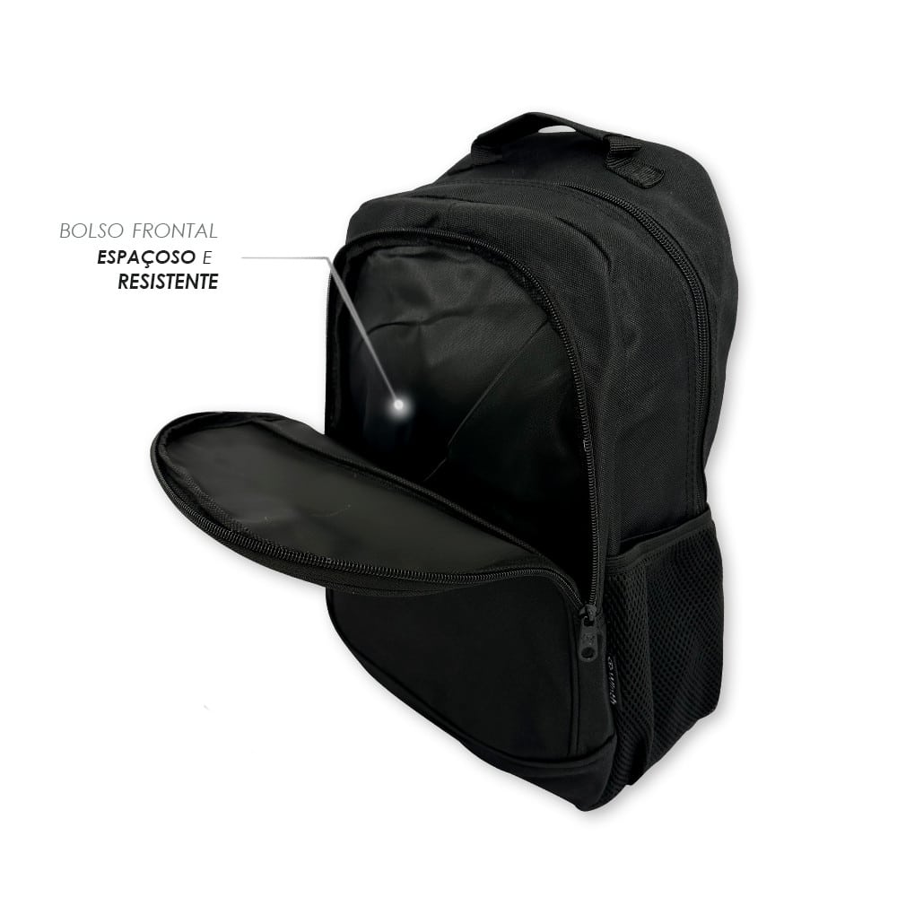 Mochila Reforçada para Notebook Essa mochila é ideal para quem carrega muito peso diariamente e precisa de mais conforto e segurança para transportar seus aparelhos eletrônicos e materiais escolares. Ideal para transportar notebook, tablet, livros pesados e até mesmo roupas e acessórios para viagens. Use para escola, faculdade, viagens, trabalho e no dia a dia. Além do compartimento principal, tem mais 1 compartimento espaçoso e 2 bolsos laterais de redinha para garrafas.