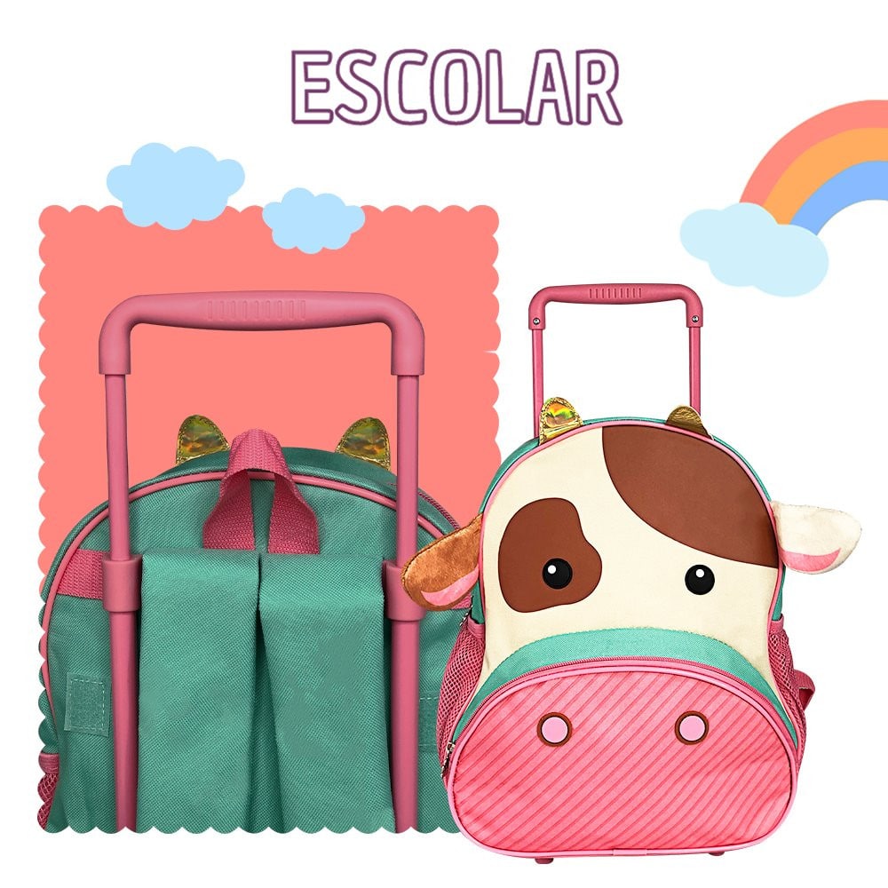 Perfeita para os pequenos que adoram diversão e praticidade, essa mochila com rodinha conta com uma estampa divertida de Vaquinha. Feito com design moderno, a mochila conta com rodinhas suaves que facilitam o transporte da mochila, além de conta com alça retrátil para puxar e alças para as costas, proporcionando mais liberdade para ir para a escola, creche e passeios. Com um ótimo armazenamento, garante que possa colocar todo o material escolar do pequeno sem dificuldades além de bolsos laterais e frontal, garantindo ainda mais espaço para armazenar os itens.
