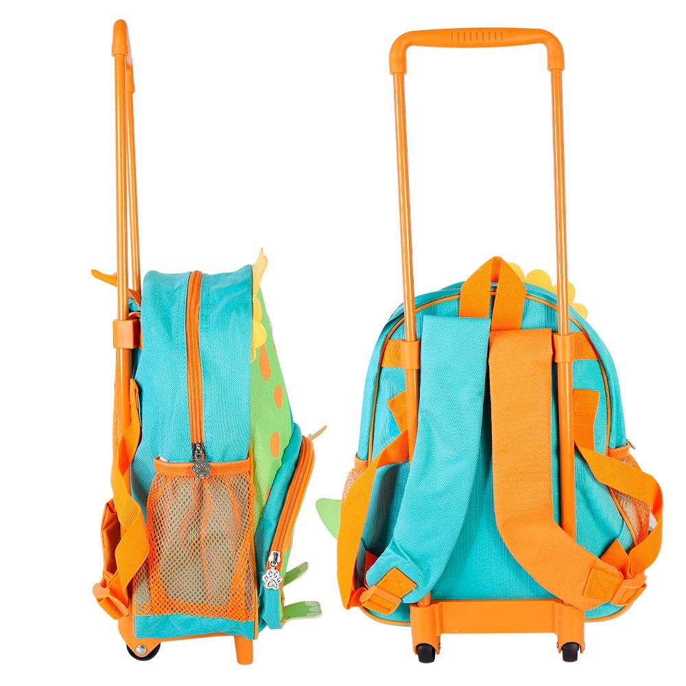 Para quem deseja praticidade na volta às aulas do seu pequeno, essa mochila será a escolha perfeita !  Com um design vibrante e colorido, conta com um dinossauro em sua estampa, destacando-se pela sua aparência moderna e divertida, suas rodinhas e alça retrátil facilitam o transporte, tornando-a uma opção prática para as crianças, podendo levar tanto para a escola como para passeios e viagens, dando a possibilidade de escolher a altura ideal. Contando com 1 bolso frontal e espaçoso e perfeitos para armazenar os materiais escolares e 2 laterais para armazenar pequenos itens.Confeccionada com materiais de alta qualidade, a mochila garante durabilidade e resistência, perfeita para usar no dia a dia sem preocupação com a integridade do produto. -Evite colocar excesso de peso no produto para não forçar os zíperes e costuras.
