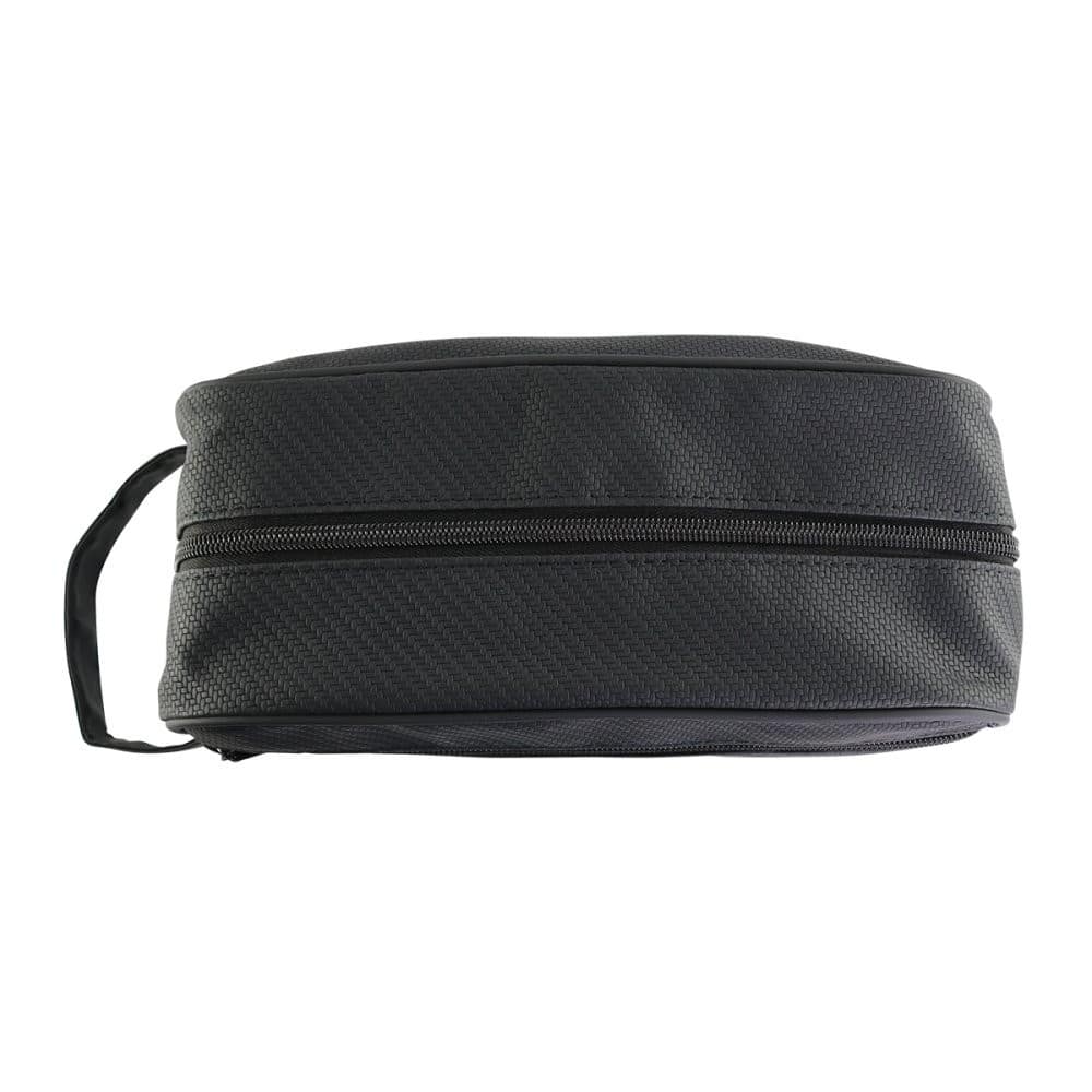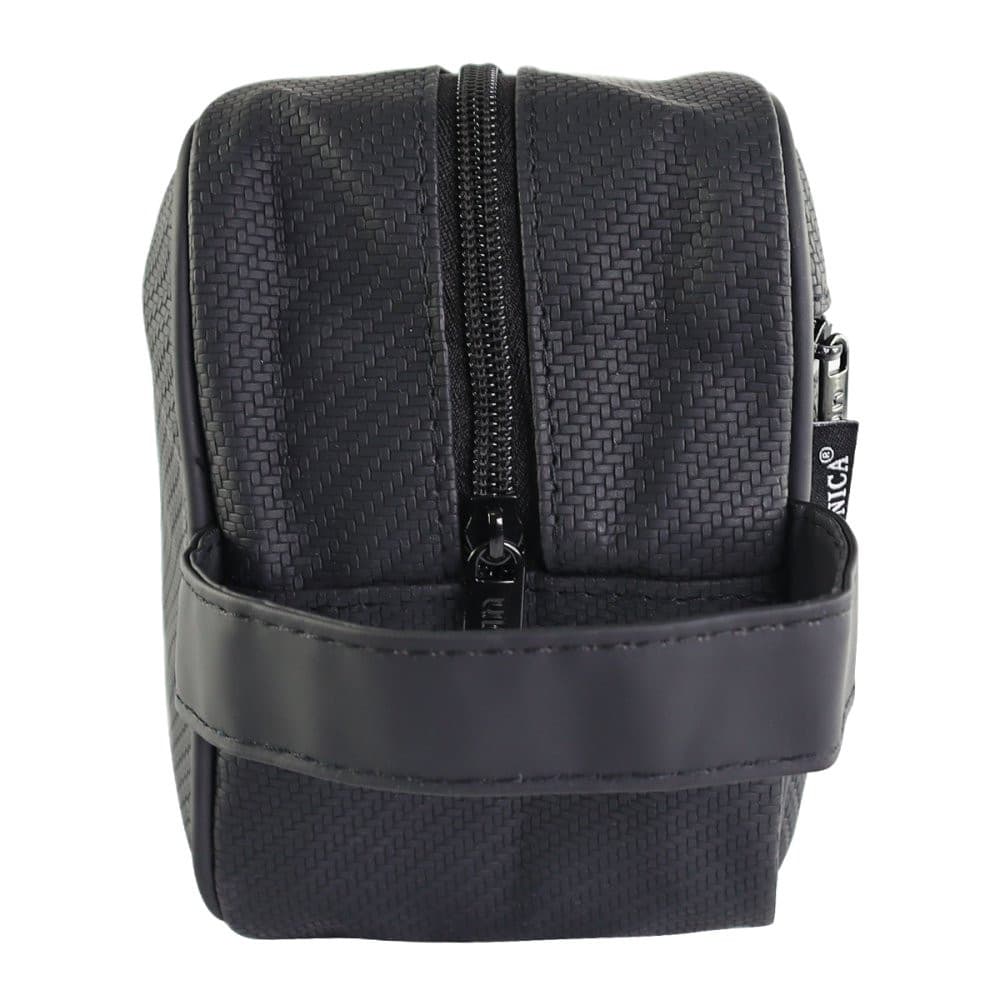 A alça fixa desta necessaire é projetada para ser confortável de segurar, sem a opção de ajuste de comprimento. Geralmente feita do mesmo material resistente da própria bolsa, a alça adiciona uma estética uniforme e sólida ao acessório. Pode ser decorada de forma complementar ao design da necessaire, com detalhes sutis como costuras reforçadas ou elementos metálicos discretos para adicionar um toque de sofisticação.Externamente, a necessaire possui dois bolsos distintos: um central espaçoso e um menor na frente. O bolso central é ideal para armazenar produtos maiores, como frascos de shampoo, condicionador, loções ou até mesmo escovas de cabelo maiores. Este compartimento é fechado com um zíper resistente, garantindo a segurança dos itens armazenados e facilitando o acesso rápido quando necessário.