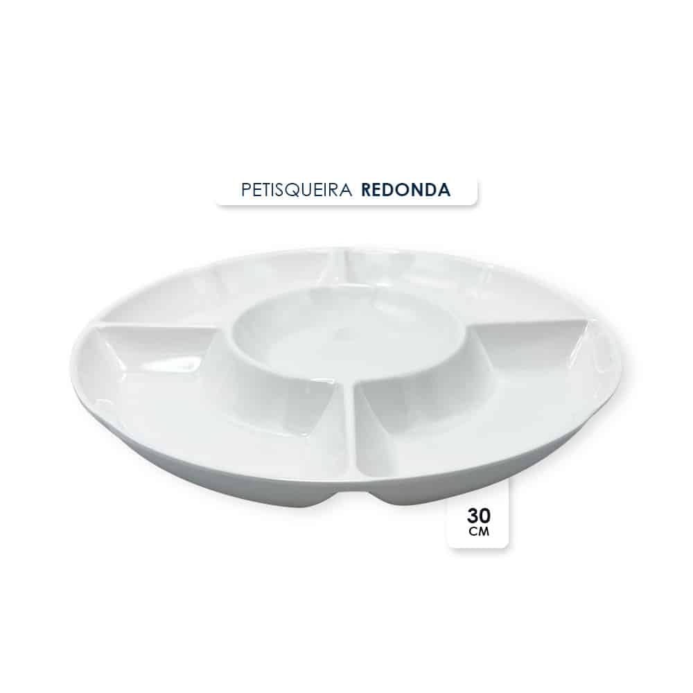 Petisqueira Redonda 5 Divisórias 30cm Essa petisqueira redonda é perfeita quem preza pela elegância na hora de receber seus convidados em casa, fazer festas, reuniões e até mesmo num encontro a dois. Deixe sua mesa linda e charmosa, recheada com petiscos deliciosos. Pode ser utilizada para servir salgados, aperitivos, queijos e fondues Salgados e Doces. Possui 5 divisórias, sendo uma redonda central e outras quatro ao redor. Feita em Melamina traz uma maior durabilidade ao produto e fácil de higienizar.