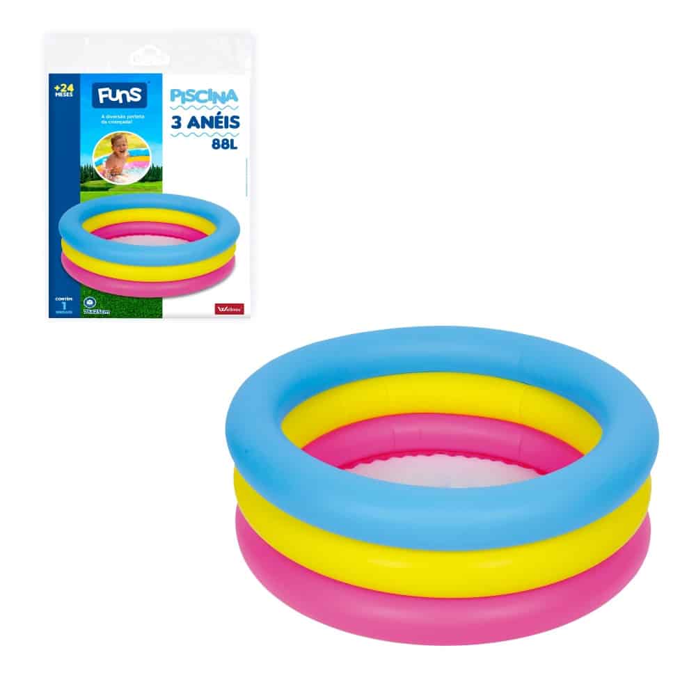 Piscina Inflável Infantil 88 Litros Pequena 3 Anéis