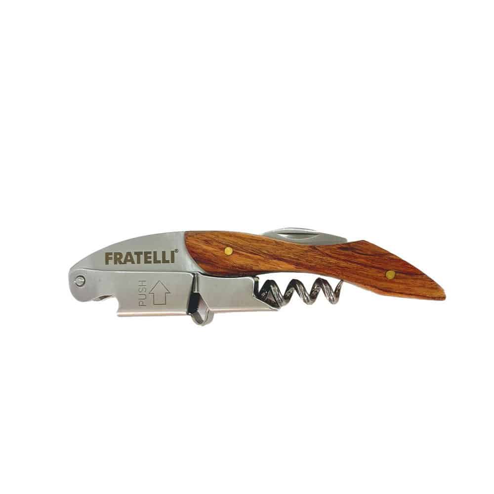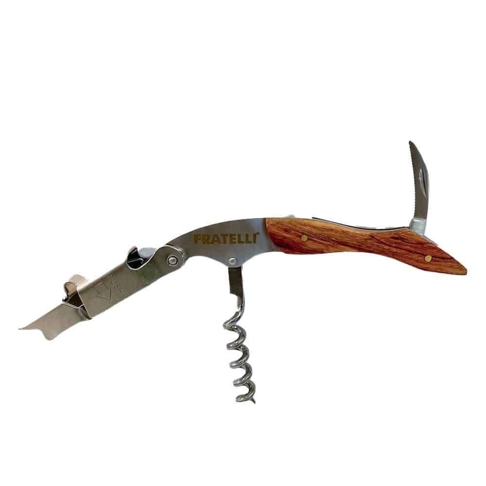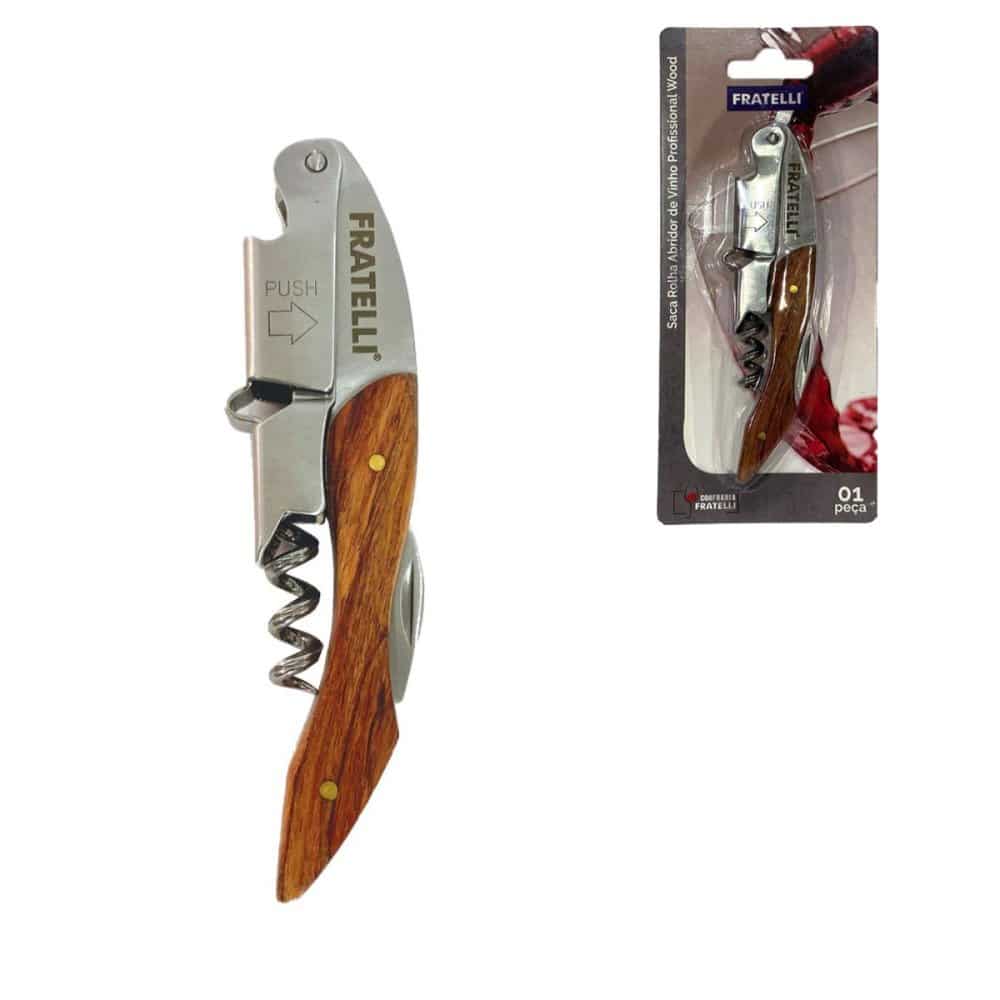 Elegante, leve, prático e portátil com acabamento em madeira, lâmina para corte de cápsulas e abridor de tampa de garrafas. A rosca especialmente projetada em aço, é capaz de remover qualquer cortiça natural ou sintética em apenas 5 voltas, sem quebrar. O entalhe de precisão ao longo do parafuso, agarra a rolha com firmeza e também reduz o arrasto ao cortar através da rolha, tornando menos provável que a rolha se desfaça ou quebre.