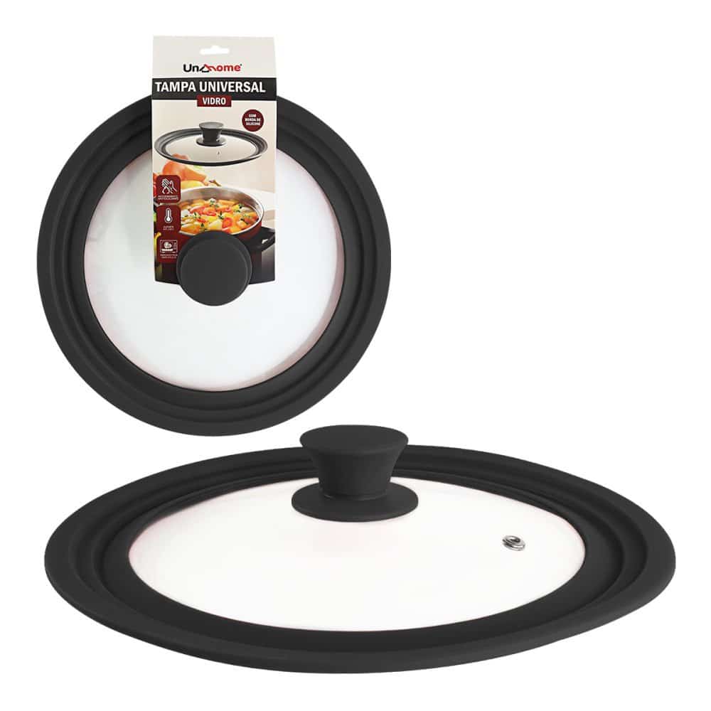 Tampa Universal de Vidro Preta com Borda Silicone Bering